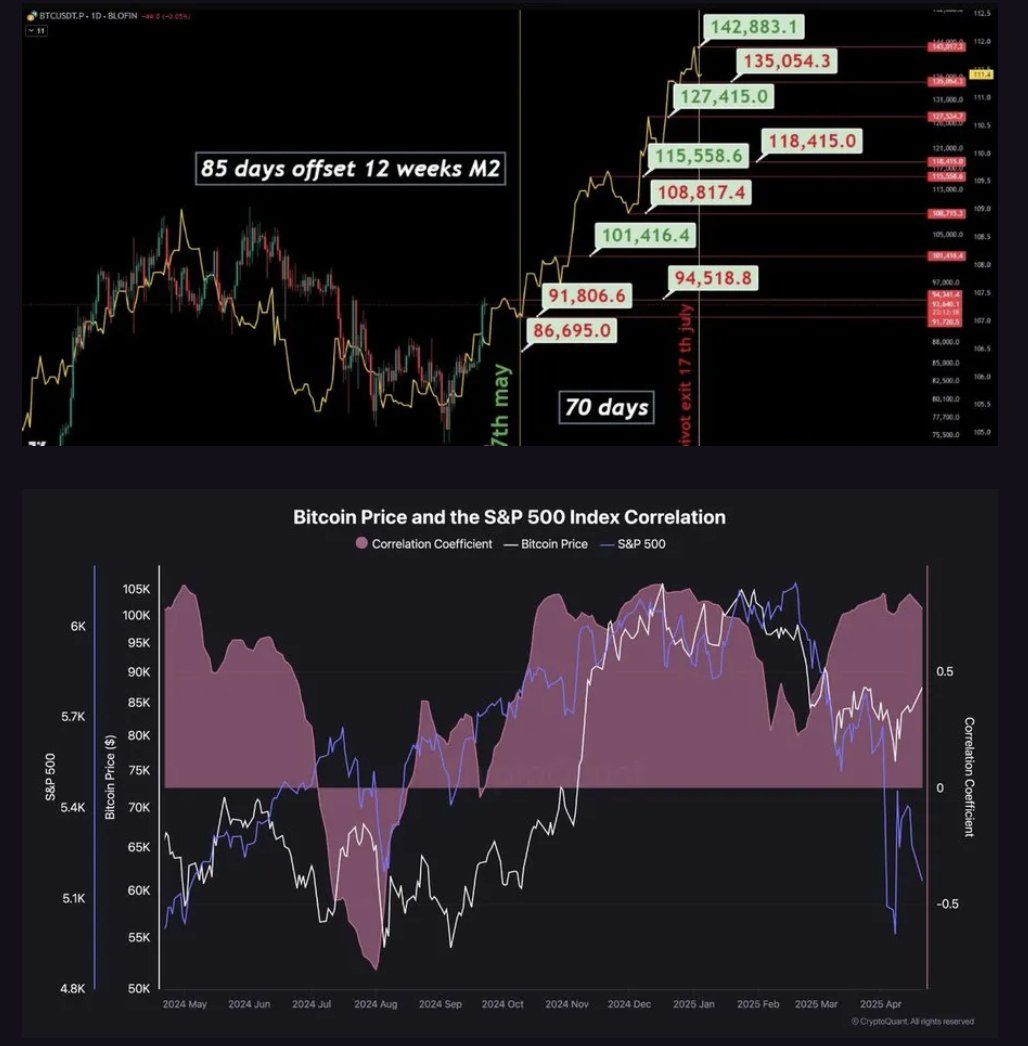 • Bitcoin kurs følger nøye globale M2 pengemengde trender, noe som indikerer potensielle gevinster når likviditeten øker i mai 2025.
