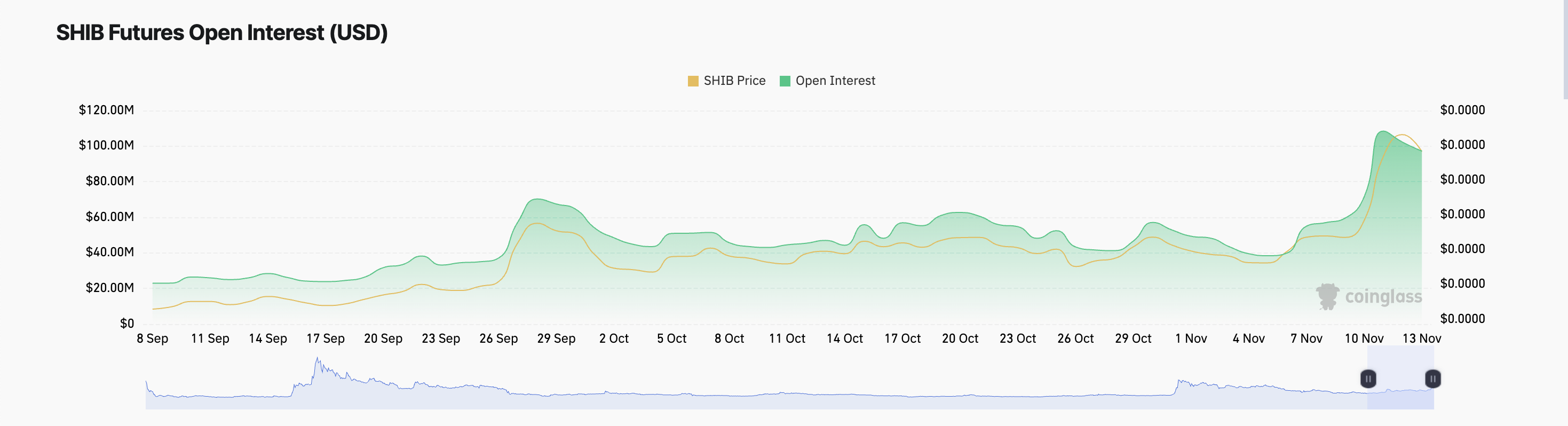 Shiba Inus synkende åpne interesse (OI) bekrefter en nedgang i markedets aktivitet og en avtagende entusiasme blant meme coin-innehavere. I skrivende stund er dette på $ 82,49 millioner, noe som er en nedgang på 32 % de siste 24 timene.
