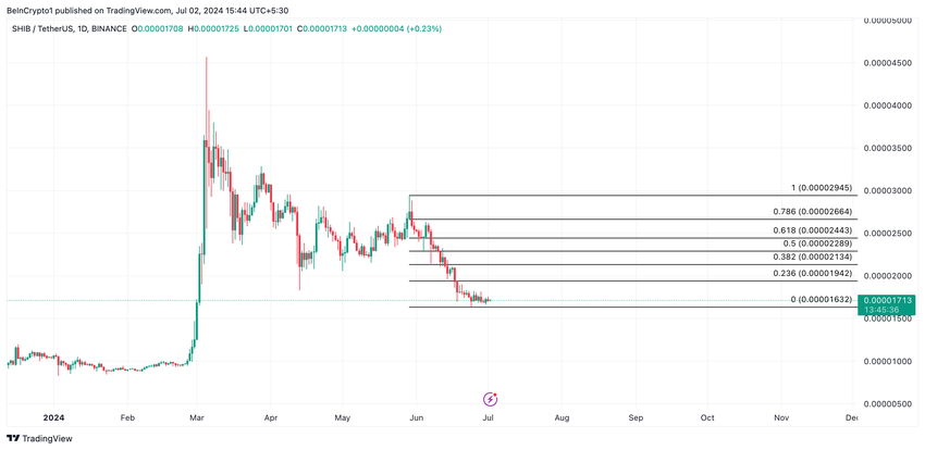 Hvis myntholdere fortsetter å selge beholdningene sine, kan SHIBs pris falle til $0,000016.