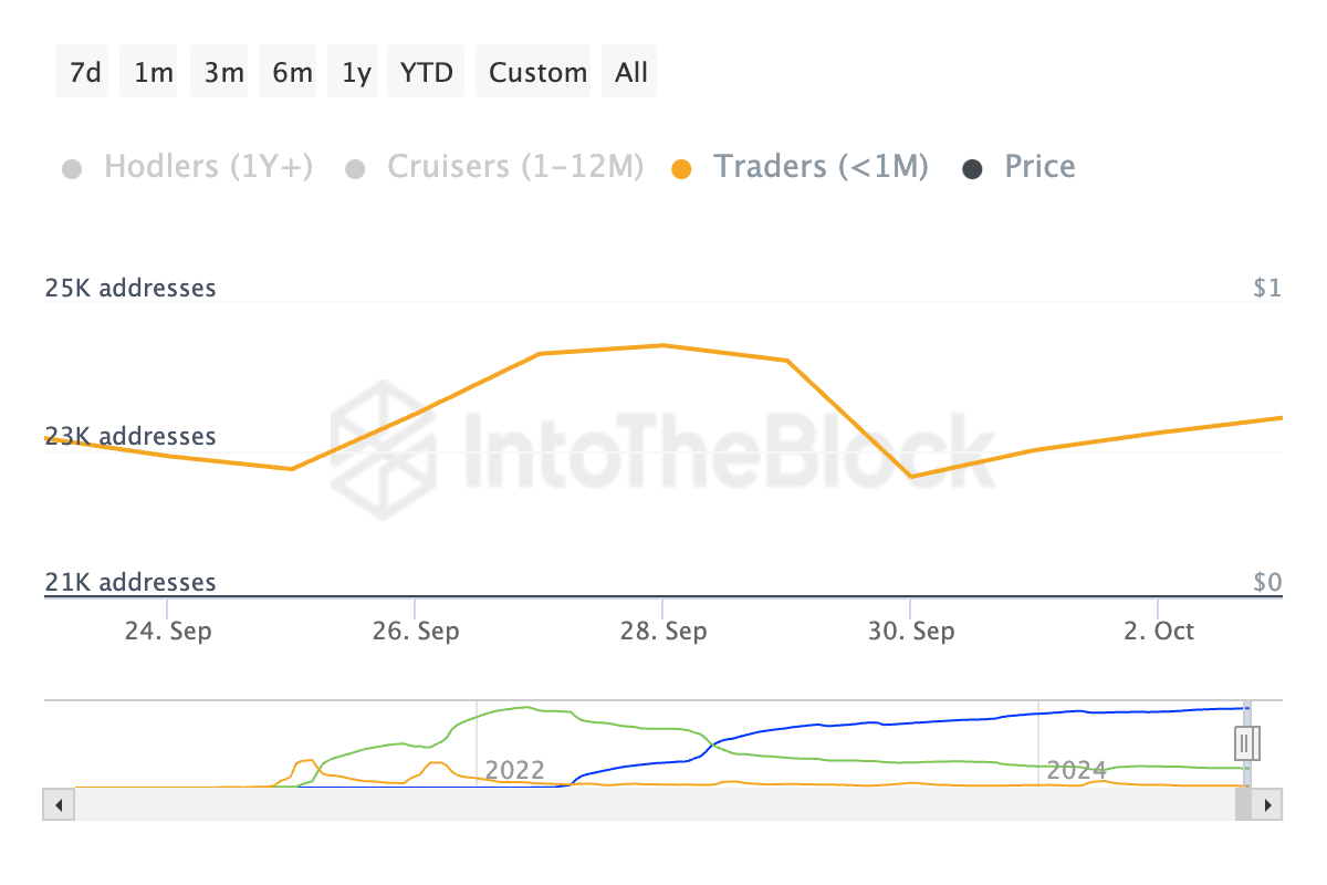 Derers salgsaktivitet er bemerkelsesverdig, ettersom kortsiktige tradere har en tendens til å være risikoaverse, og selger sine aktiva ved det minste tegn til trøbbel. Gitt at de holder en betydelig del av SHIBs omløpsforsyning, legger deres salgsaktivitet betydelig nedadgående press på myntens pris.