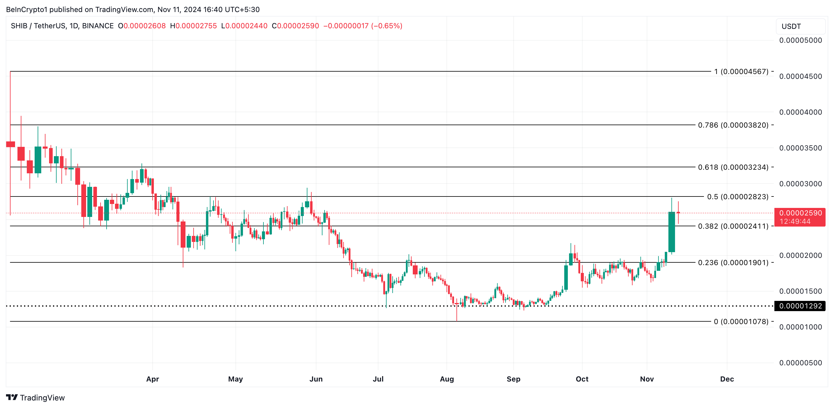 Ved sin nåværende pris, handles SHIB rett under det viktige motstandsnivået på $ 0,000028. Med økende kjøpspress, gjenstår spørsmålet: Kan oksene gjøre dette nivået til et solid støttenivå?