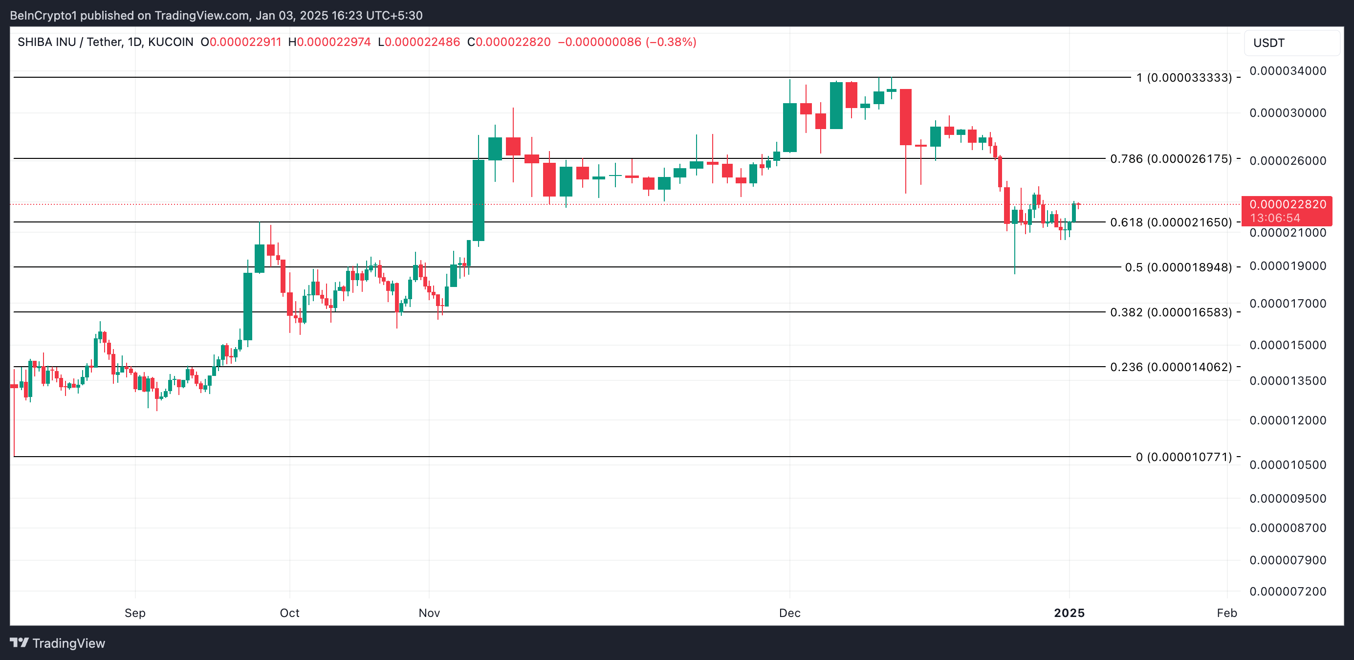 I skrivende stund handles meme coinen til $ 0,000022. Hvis salgspresset forblir minimalt og hvalene intensiverer sin akkumulering, vil Shiba Inu kurs bryte motstanden på $ 0,000026 og gjenbesøke den månedlige toppen på $ 0,000033.
