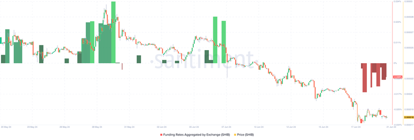 Videre forblir finansieringsrenten negativ etter å ha falt 17. Spesielt er SHIBs finansieringsrate 0.008%.
