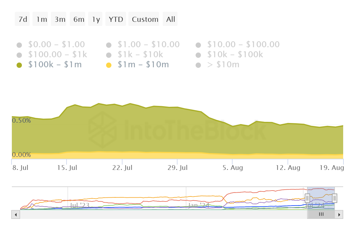 Den fortsatte nedgangen som observeres i Shiba Inus pris er en av de største grunnene til at hvalinvestorer kunne ha trukket seg ut. Som et resultat er deres innflytelse for øyeblikket litt svakere enn den vanligvis er.
