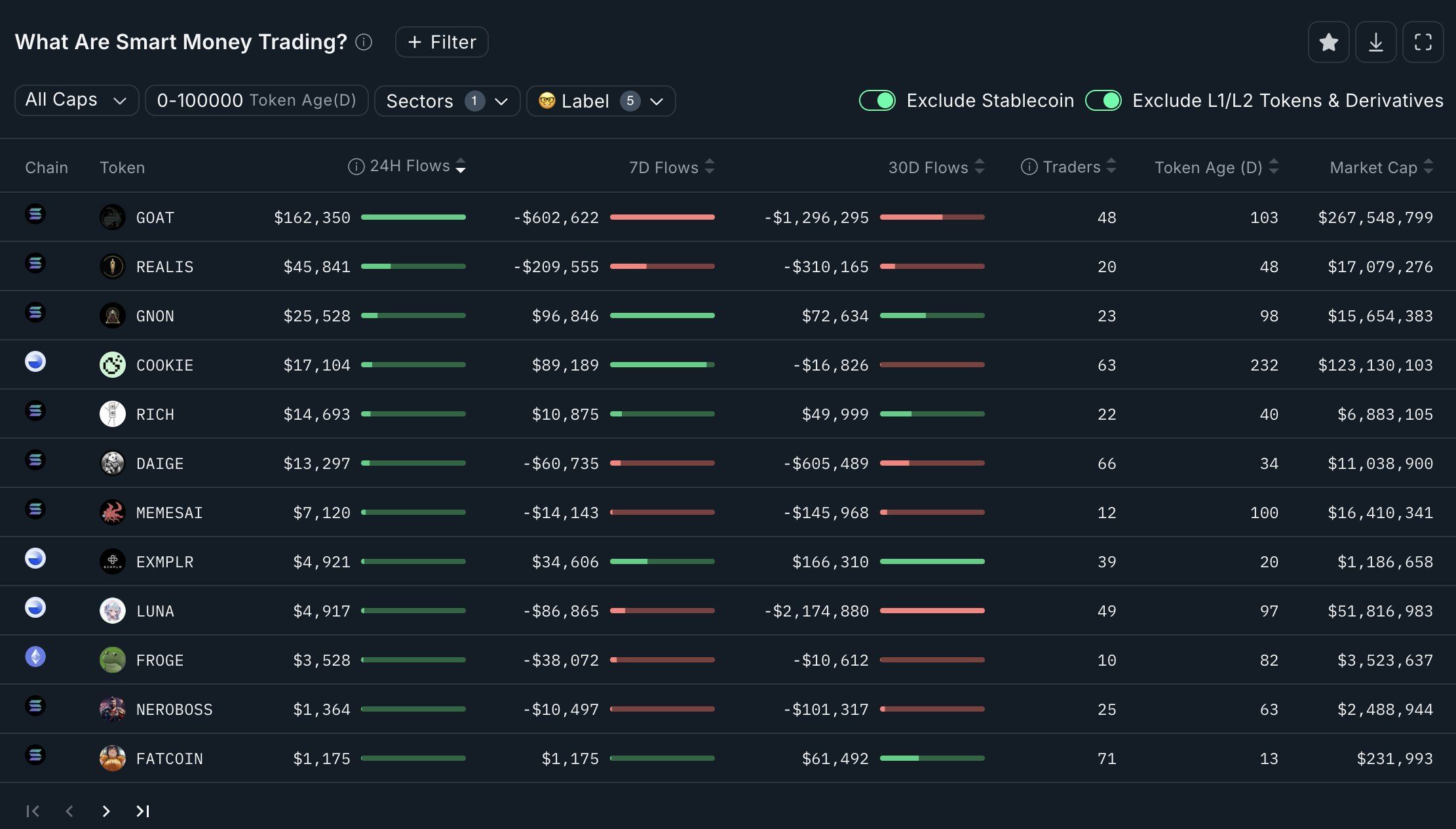 Blant AI tokens, så AI16Z, ARC, SWARMS og ZEREBRO positive strømmer fra smarte penger i løpet av de siste 24 timene. Hvis trenden fortsetter, kan AI tokens snart overgå meme coins. Det forventes at flere investorer vil følge handlene til smarte penger.