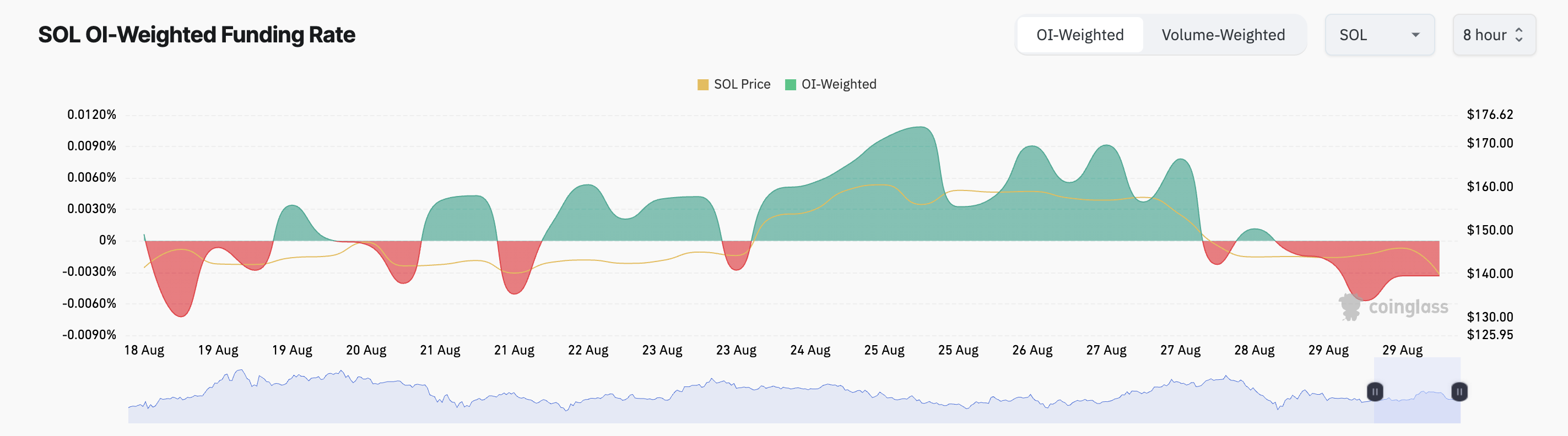Sentimentet i SOLs futuresmarked speiler det bearish utsikten i dets spotmarked, med tradere som stadig tar short-posisjoner de siste to dagene. Siden 28. august har SOLs finansieringsrate vært negativ, noe som indikerer at flere tradere satser på en ytterligere nedgang i aktivaprisen.