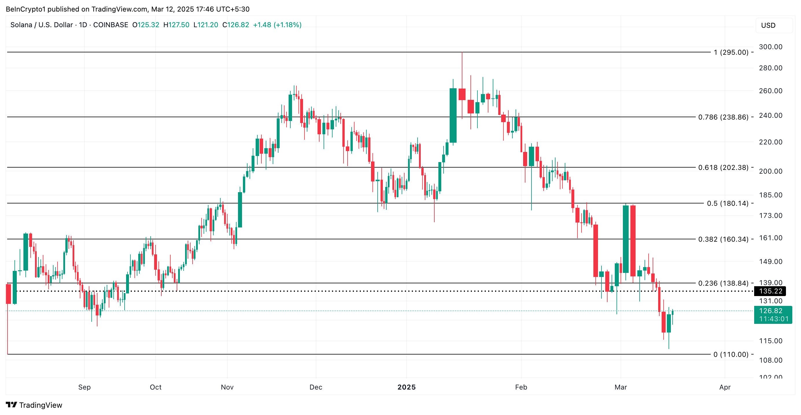 SOL handles til $ 126,82 på presstidspunktet. Med avtagende kjøpspress risikerer den å falle til $ 110, et lavpunkt den sist nådde i august 2024.