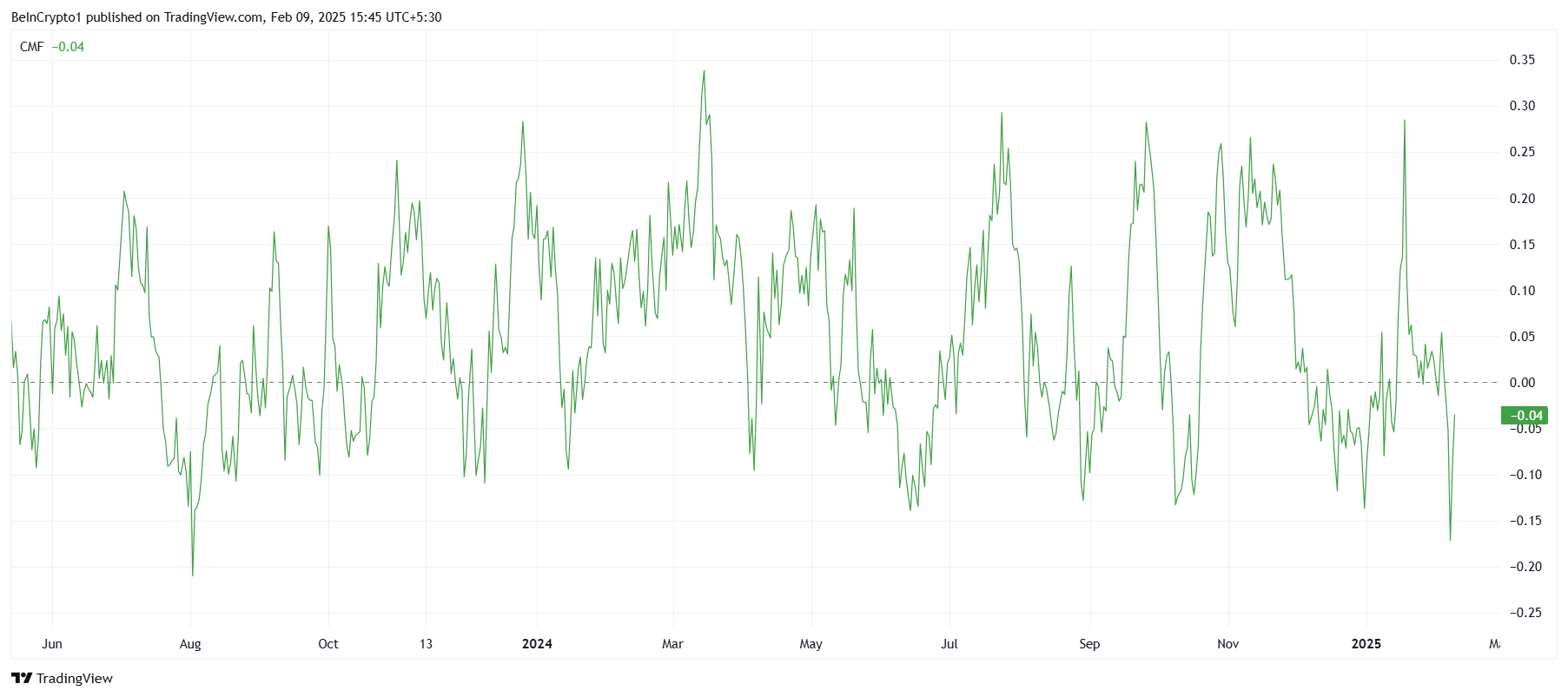Solanas Chaikin Money Flow (CMF) indikator har falt til et 18-måneders lavpunkt. Denne nedgangen reflekterer en økning i utstrømninger, og markerer den sterkeste kapitalflukten fra aktivaet siden august 2023.