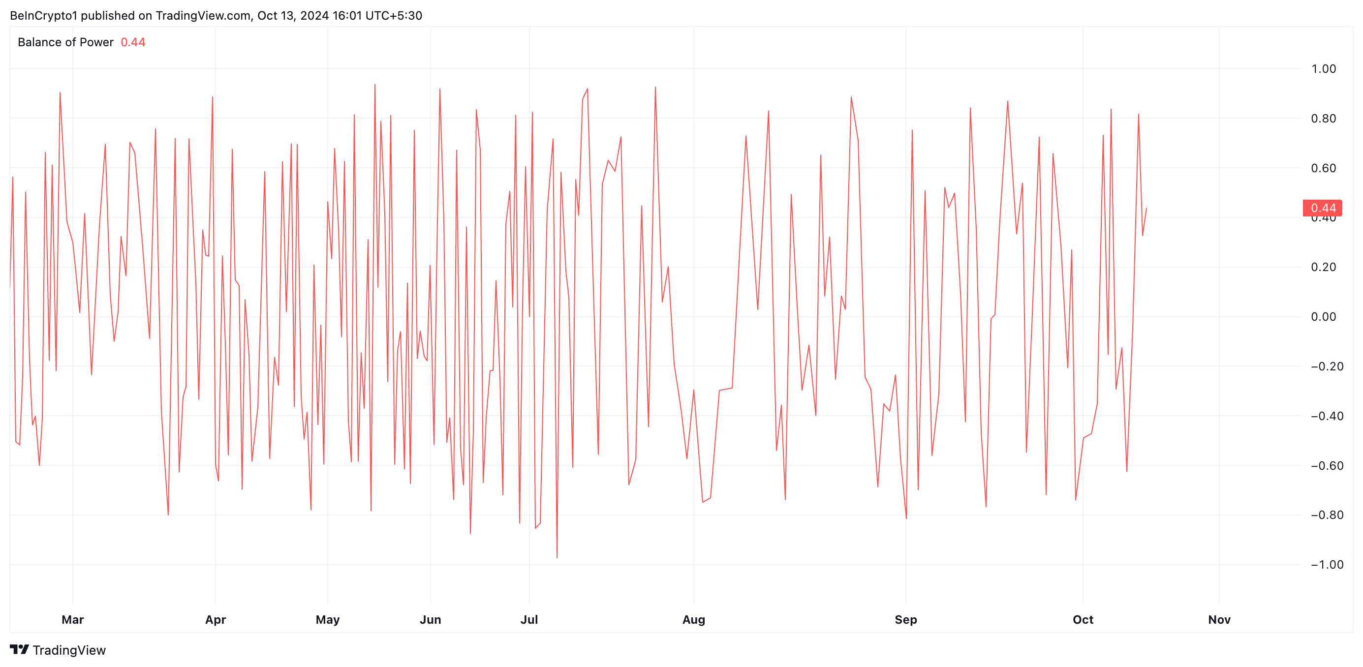 I tillegg støtter SOLs positive Balance of Power (BoP) dette bullish utsiktet. Denne indikatoren måler styrken til kjøpere versus selgere i markedet. Ved trykketidspunktet, er SOLs BoP 0,44, noe som antyder at kjøpere har kontroll og forsøker å presse prisen høyere.