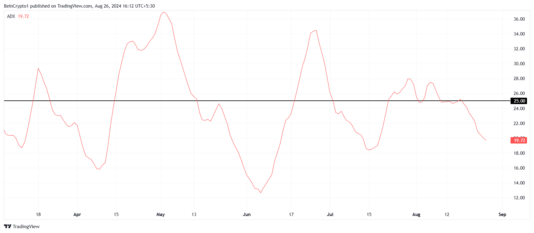 Det gjennomsnittlige retningsindeksen (ADX) som faller under 25,0-terskelen indikerer at oppgangstrenden har mistet all sin momentum. Denne tekniske indikatoren, som måler styrken til en trend, antyder at markedet ikke lenger har en sterk retningstendens.
