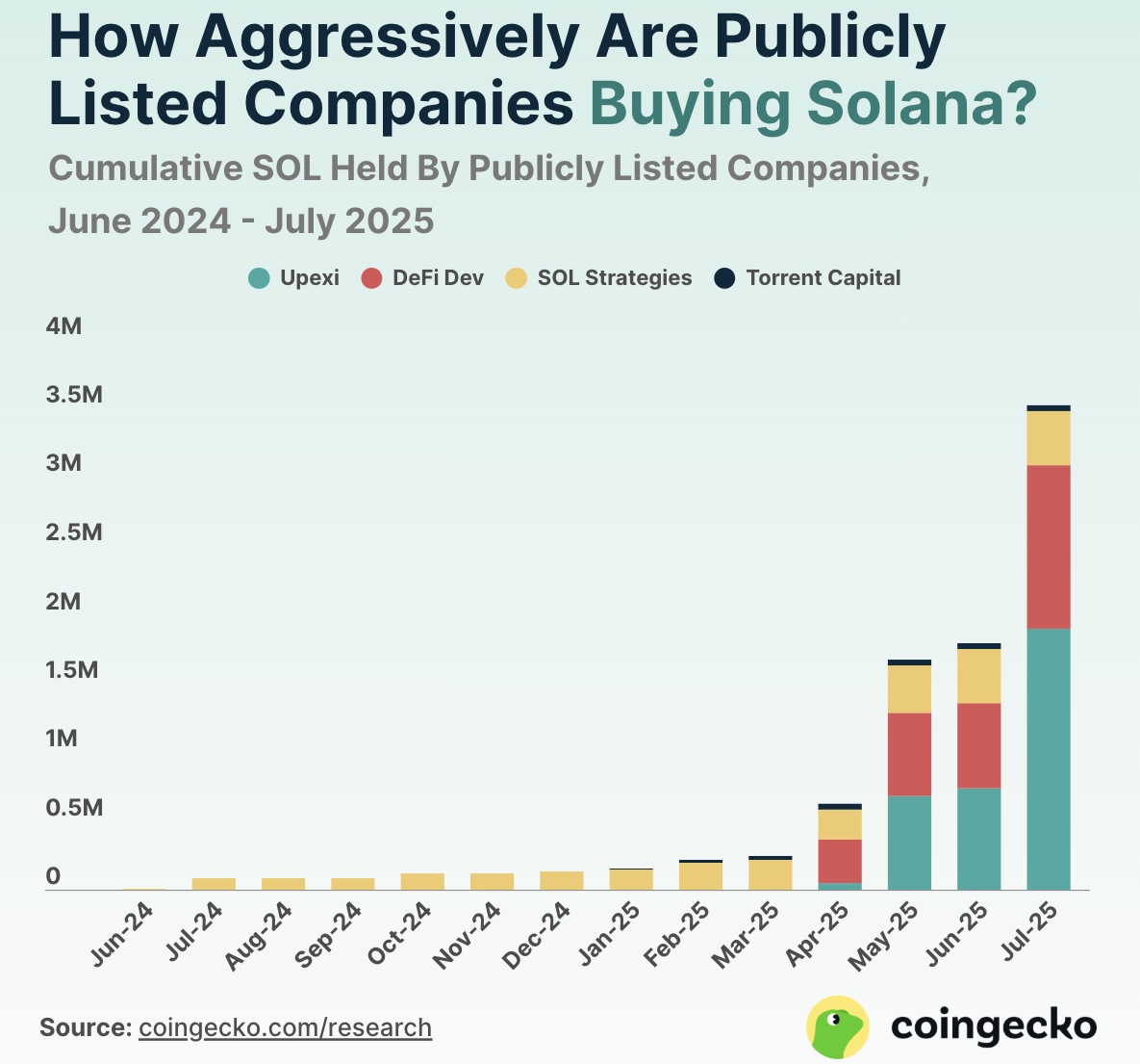 CoinGecko har gitt ut en rapport om Solana treasury-selskaper, som gir flere viktige innsikter. Sektoren er mye mindre overfylt enn bedriftsinvestorer i Bitcoin og Ethereum, men interessen vokser raskt.