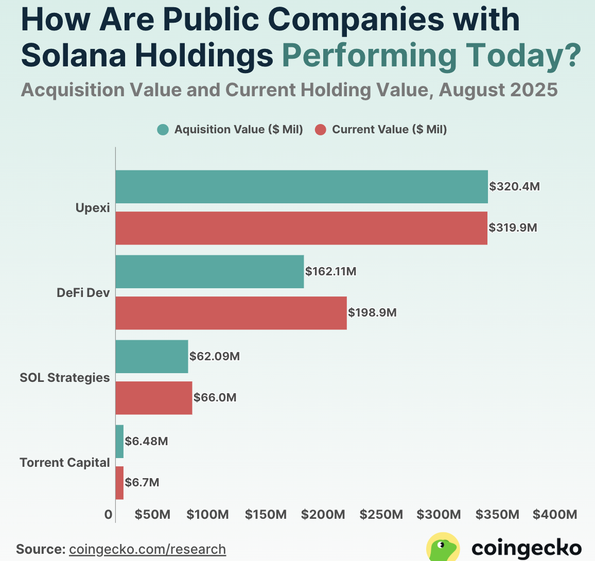 De andre selskapene presterte bedre, men ingenting som MicroStrategys ville avkastning. BTC treasury-investorer forventer ofte en fantastisk prestasjon, men Solana er ikke der ennå.