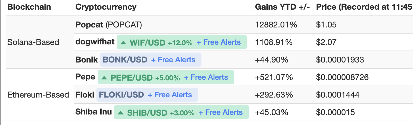 Minst av alt utmerker Solana seg allerede på flere områder. For eksempel viser data fra CoinGecko at et utvalg av Solana-baserte meme coins gjør det bedre enn deres Ethereum-motstykker. Mens kryptovalutaer med kjæledyrtema har økt over hele linjen i 2024, ser de på Solana betydelig høyere vekst.
