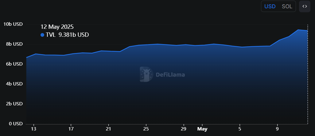 Til sammenligning opplevde Solana en økning på 40 %, og brakte sin TVL til $ 9,38 milliarder. Til tross for dette forblir Solana den dominerende plattformen i DeFi-området, etter å ha håndtert $ 35 milliarder i transaksjoner via desentraliserte børser (DEXs) siden begynnelsen av mai.
