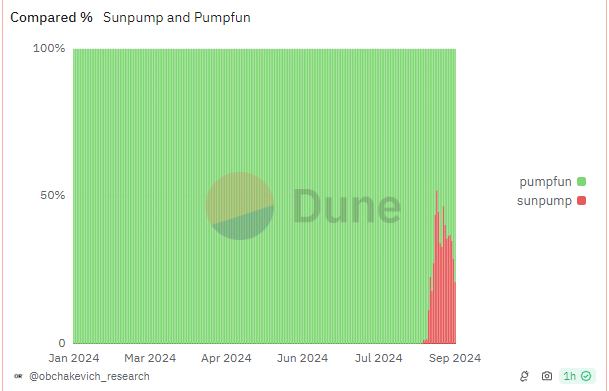 Likevel har Pump.funs suksess inspirert flere etterlignere på andre blokkjede-nettverk, som SunPump på Tron. Nylig ser det ut til at tradere har flyttet oppmerksomheten til Justin Sun-støttede plattformen takket være hans aggressive markedsføringstaktikker.