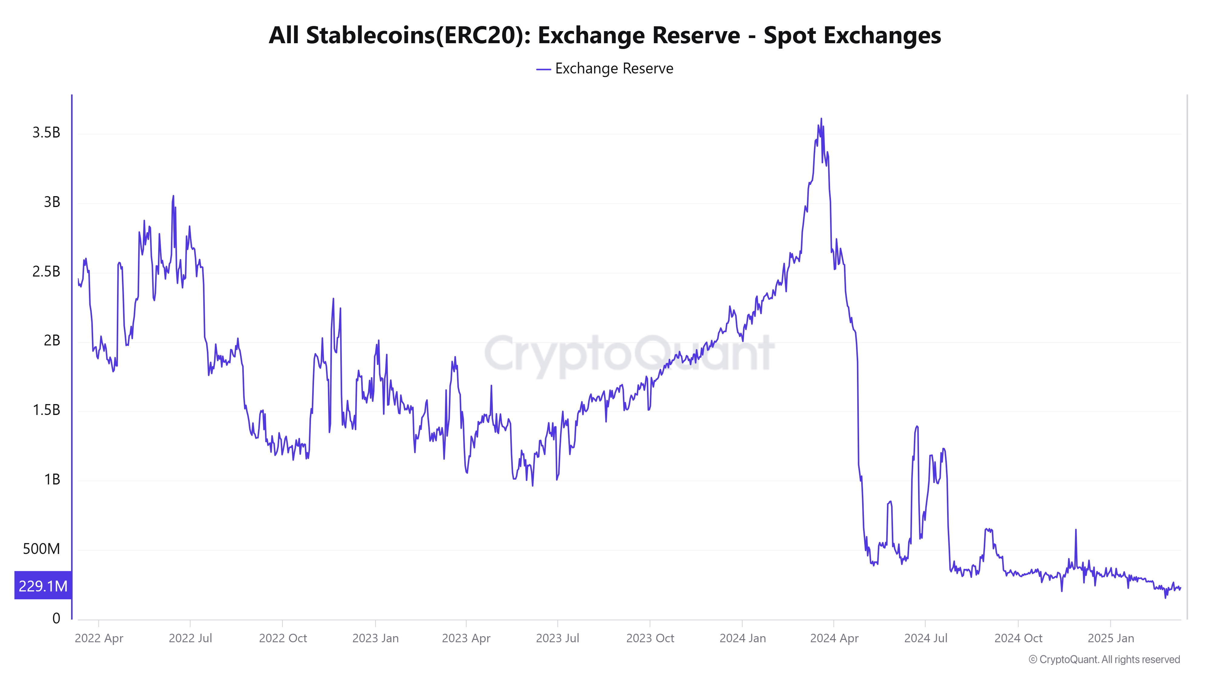 Imidlertid forteller en nærmere titt på spotbørser en annen historie. I stedet for å øke, har stablecoin-reservene på disse plattformene faktisk falt betydelig.