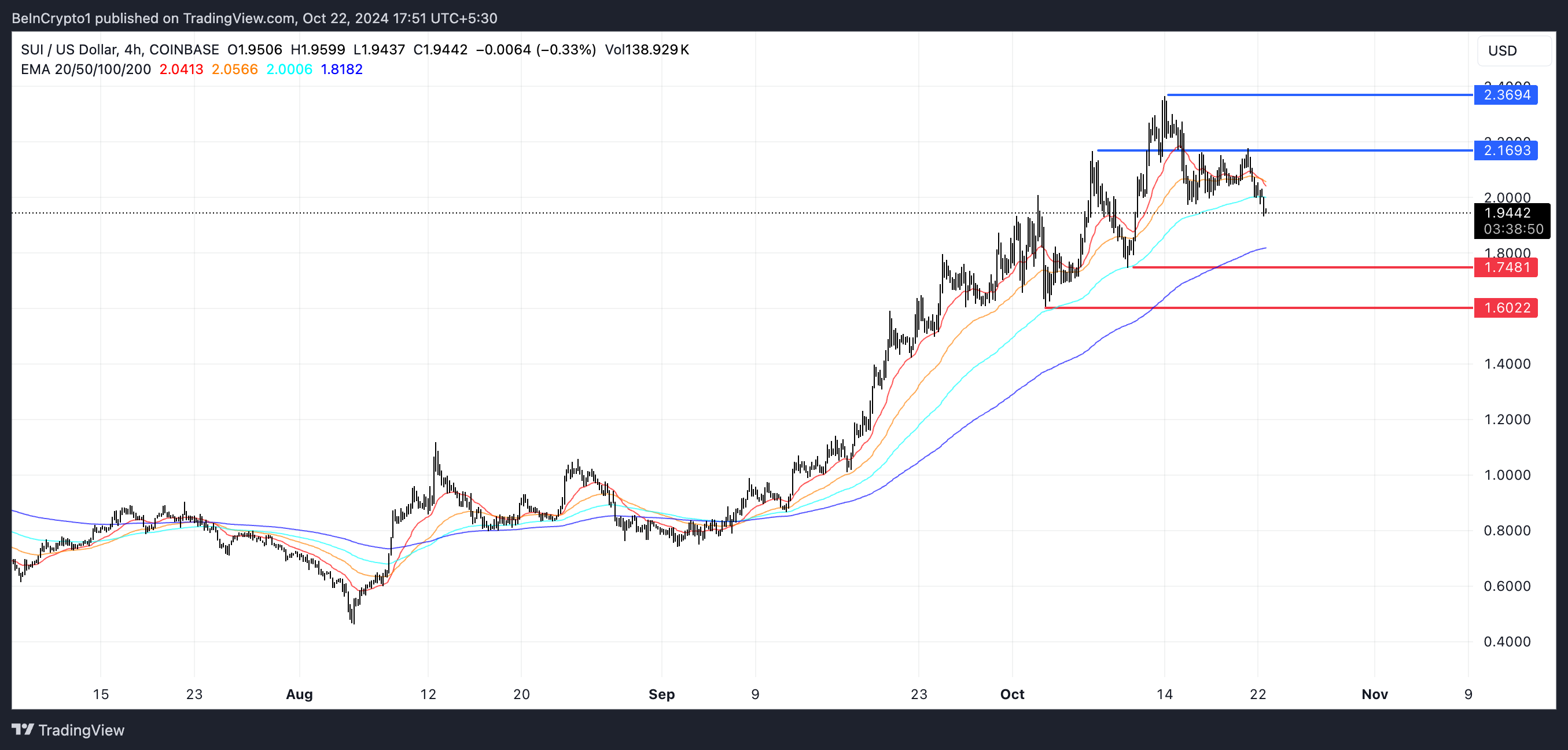 Skulle det nivået brytes, kunne SUI også teste $ 2,36, noe som ville representere en mulig prisøkning på 21 %.