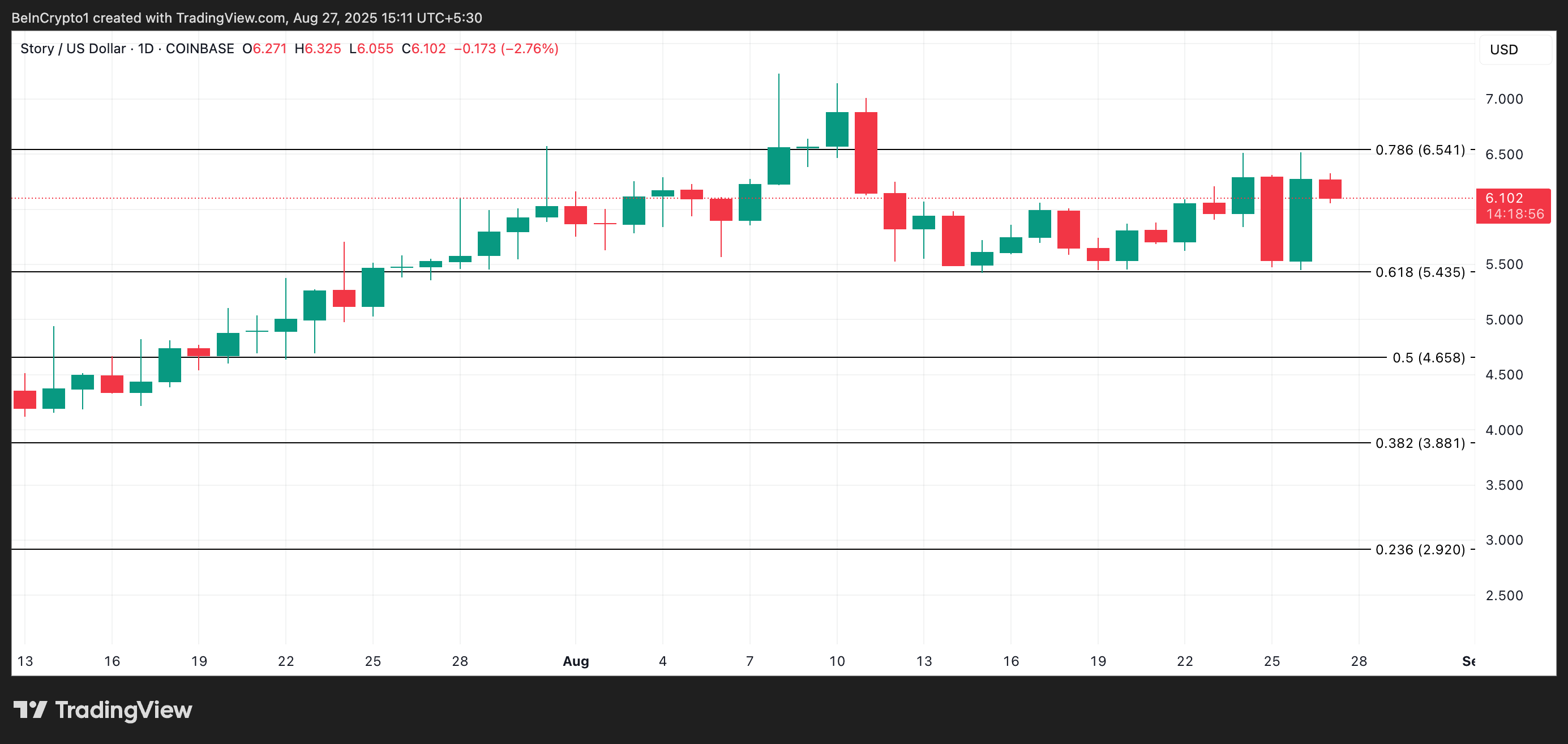 Uten etterspørsel som støtter IP’s oppgang, er den i fare for en betydelig tilbakegang når det generelle markedets momentum svekkes. I dette scenariet kan myntens pris stupe til $ 5,43.