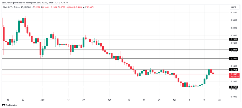 Men hvis den bryter motstanden på $0,170, kan CGPTs pris stige mot $0,200, og ugyldiggjøre den bearish tesen.