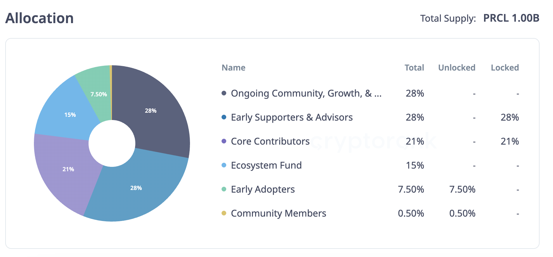 Antall tokens som frigjøres: 161,7 millioner PRCL (16,2 % av totalforsyningen)
