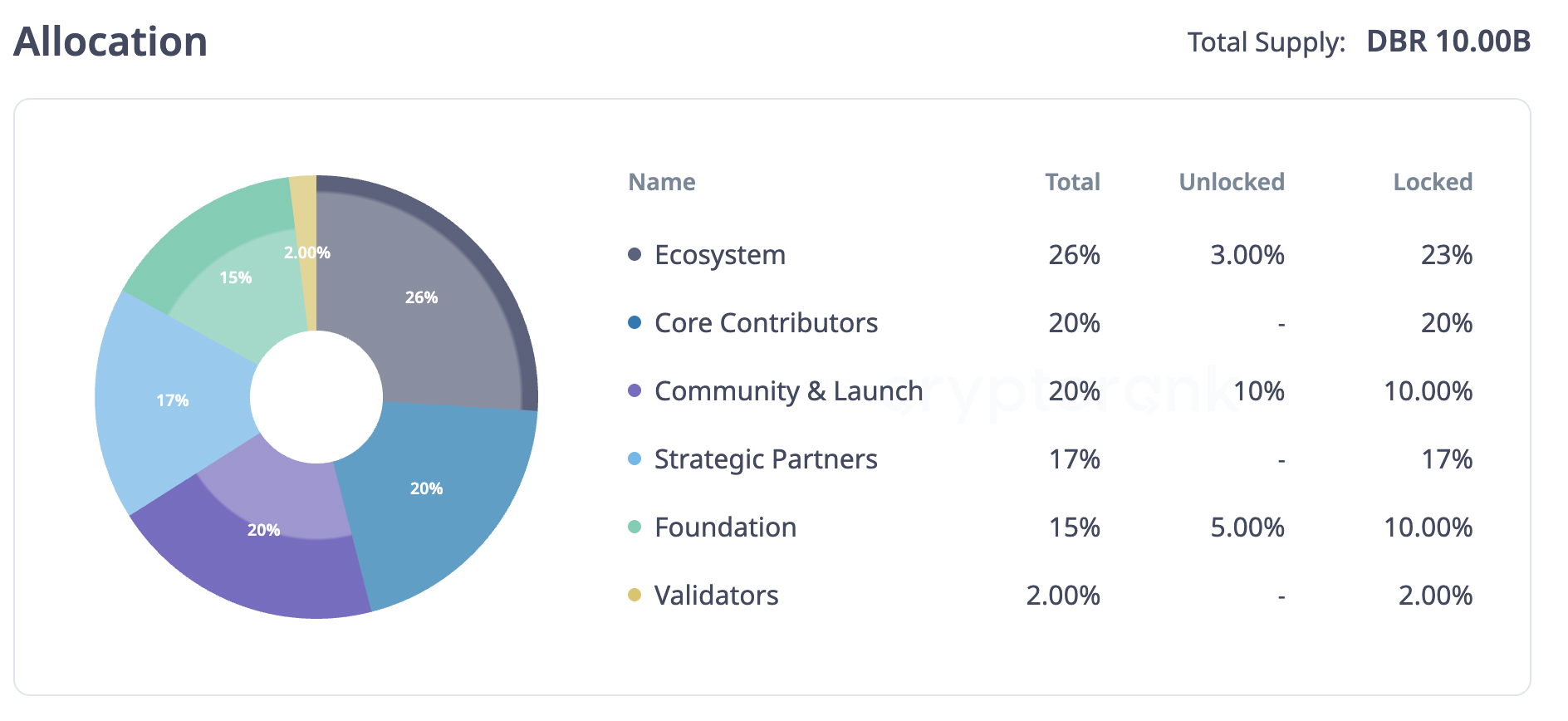 Antall tokens som frigjøres: 1,11 milliarder DBR (11,1 % av totalforsyningen)