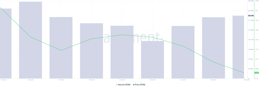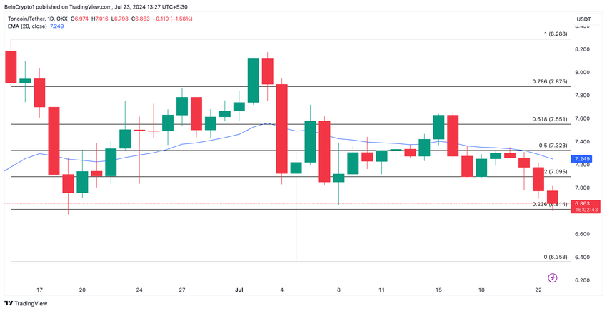 Hvis denne nedadgående trenden fortsetter, kan TON falle til en månedlig lav på $ 6,35