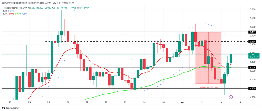 Omvendt, hvis investorer holder tilbake fra å selge under et prisrally, har Toncoin muligheten til å overvinne motstandsmerket på $ 5.44. Å oppnå dette kan bane vei for kryptovalutaen til å nå en ny all-time high, og dermed utfordre de bearish utsiktene.