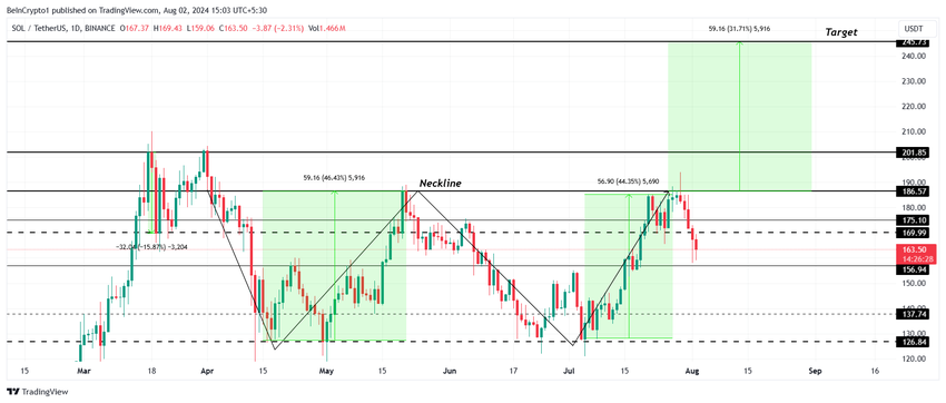 Dette kan hjelpe SOL med å nå det 31 % rallymålet presentert av det optimistiske dobbeltbunnsmønsteret. Solanas pris kan dermed nå $ 245.