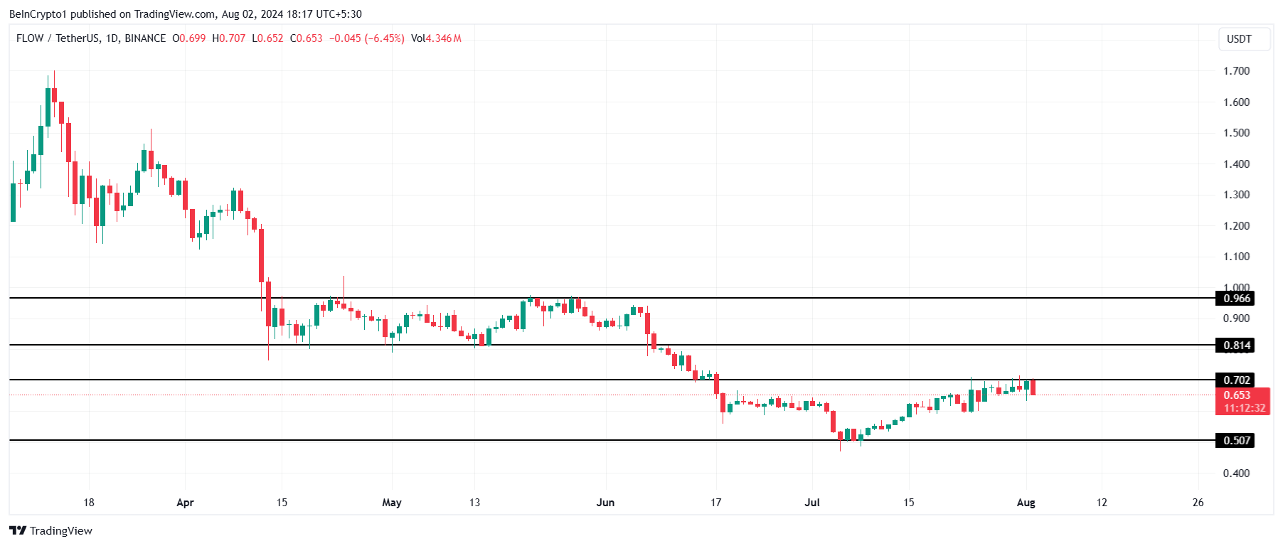 Men hvis dette ikke skjer, kan det også resultere i konsolidering under $ 0,96, som har vært tilfellet for FLOW fra midten av april til midten av juni.