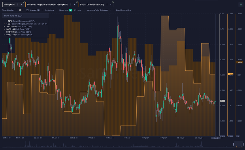 På samme måte har XRP vist et “lunkent sentiment” med et positivt/negativt forhold på 1,62:1. Dette indikerer at tradere har blitt noe utålmodige med ytelsen, omtrent som med Cardano.