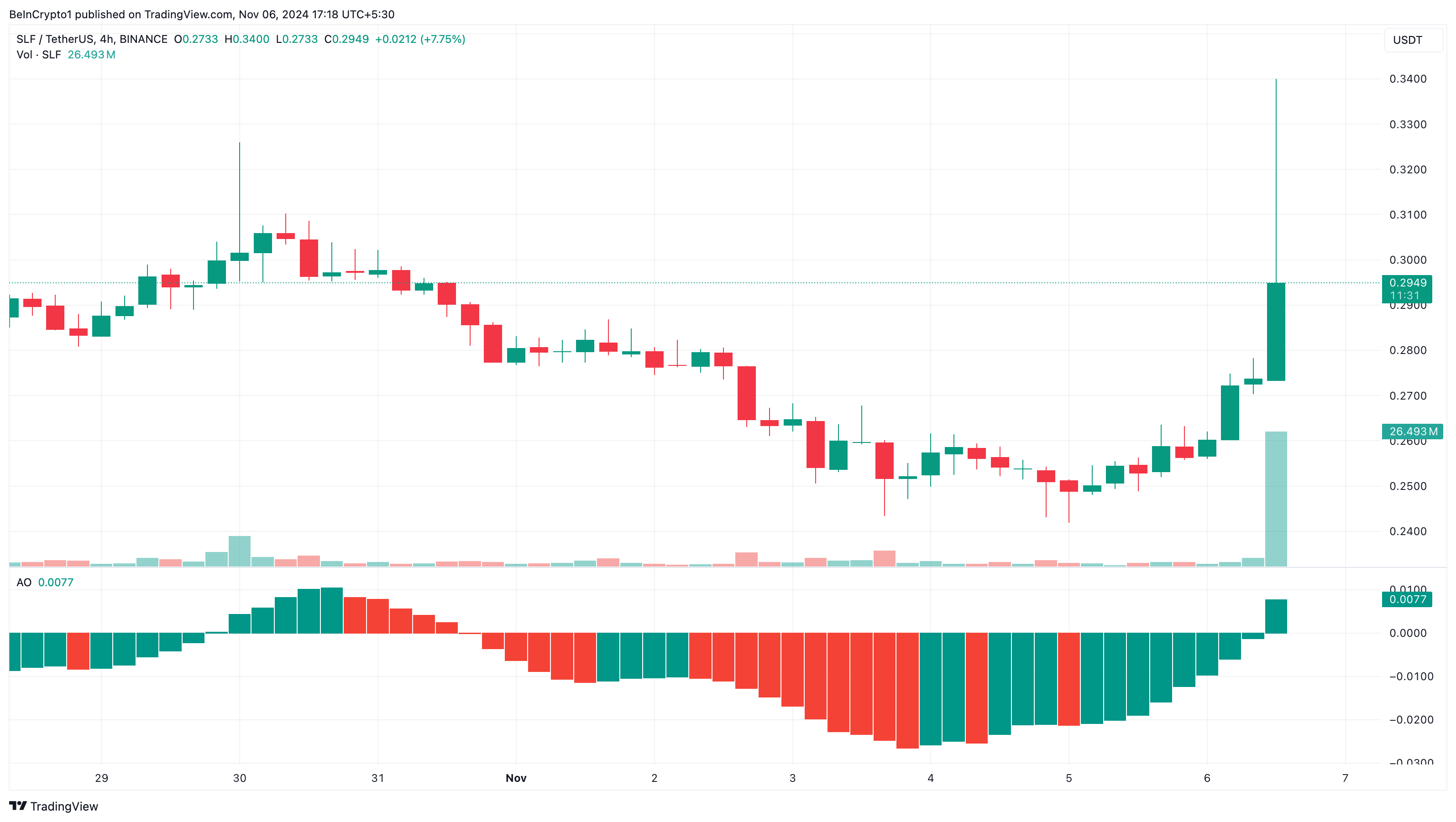 Derfor, hvis momentumet forblir bullish, kan SLFs pris fortsette å øke. Hvis det skjer, kan altcoinens verdi stige til det høyeste nivået på veken til $ 0,34. På den annen side kan en økning i salgspresset gjøre denne prognosen ugyldig, og prisen på altcoinen kan falle til $ 0,2
