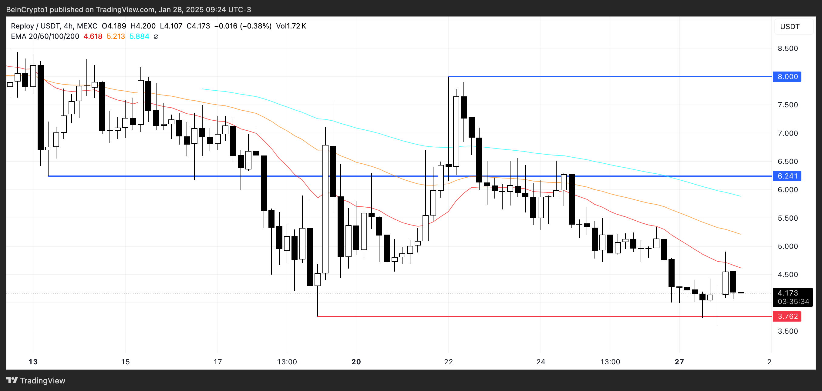 EMA-linjer antyder at RAI er i en nedadgående trend og kan teste støttenivået på $ 3,76 hvis nedgangen fortsetter. En reversering kan presse tokenen til $ 6,24, med en sjanse til å stige videre til $ 8 hvis motstanden brytes.