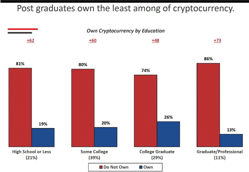 Rundt 19 % av velgerne eier eller planlegger å investere i kryptovaluta, og rundt 11 millioner registrerte velgere eier kryptovaluta for mer enn 1000 dollar. Litt over en fjerdedel av studenter, som utgjorde en betydelig del av Trumps velgerbase i primærvalgene, eier også kryptovaluta. Derfor kan nye og gamle krypto-supportere bli avgjørende i valget i 2024.