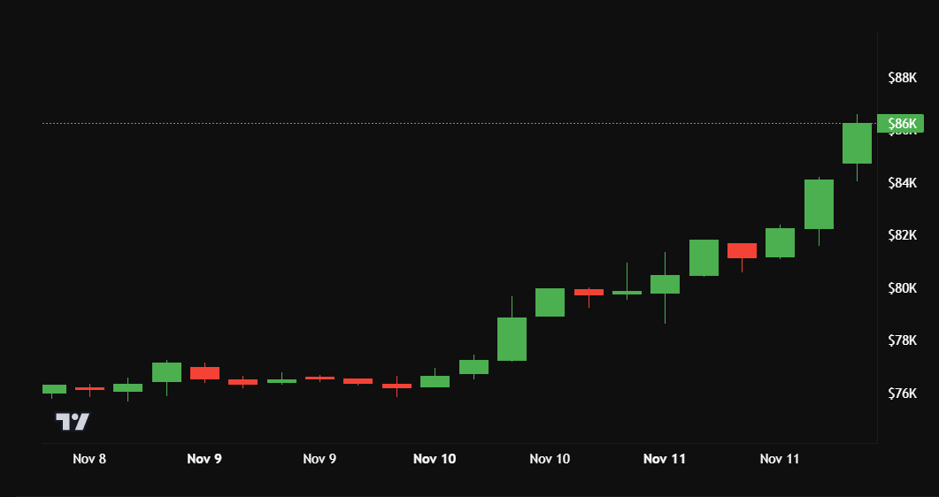 Bitcoin har nådd nye topper fire påfølgende dager etter valget. I dag nådde BTC en ny rekordhøyde på $ 89 000.