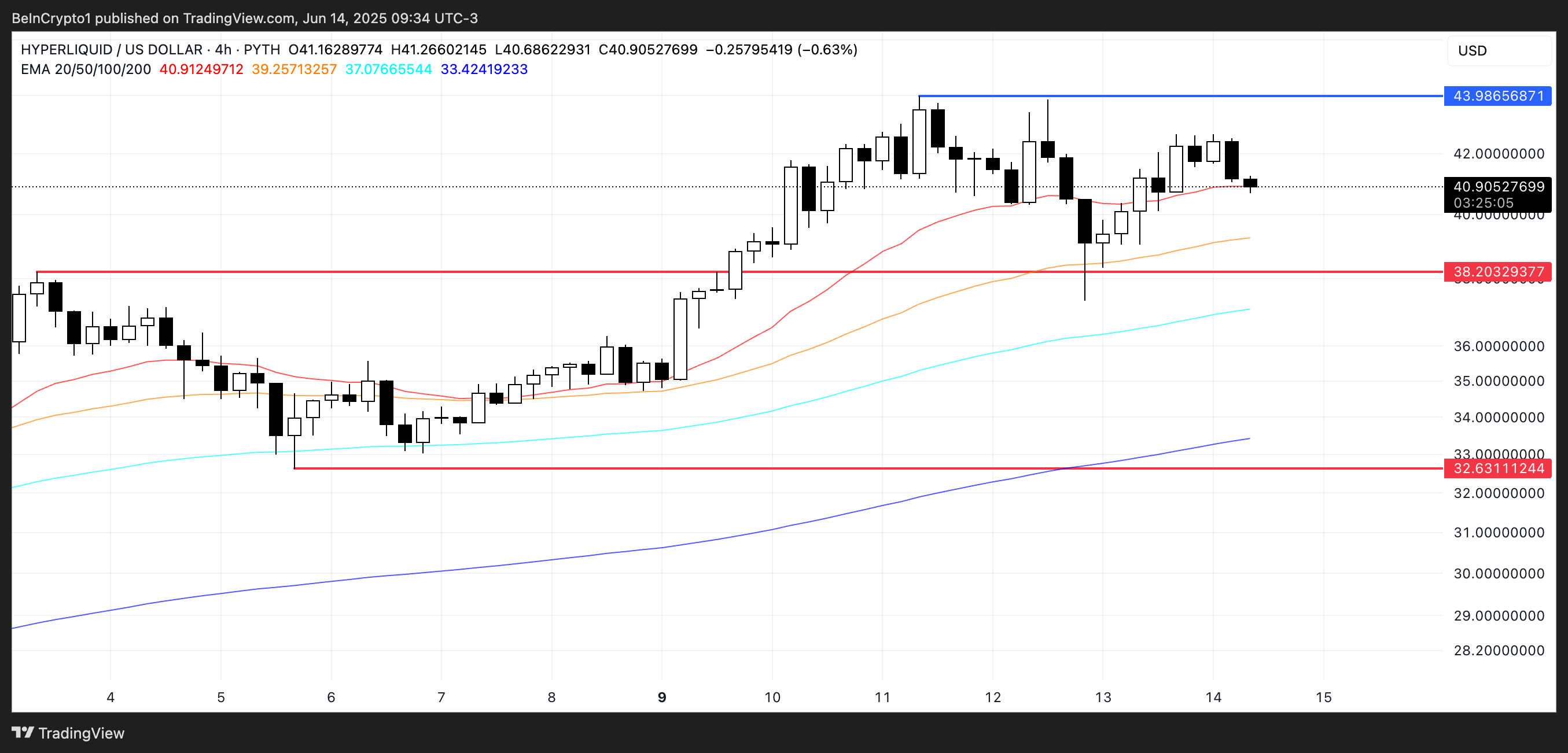 Hyperliquids native token, HYPE, har handlet nær all-time highs de siste dagene, og ligger for øyeblikket rundt $ 40 etter kort å ha nådd nivåer nær $ 44.
