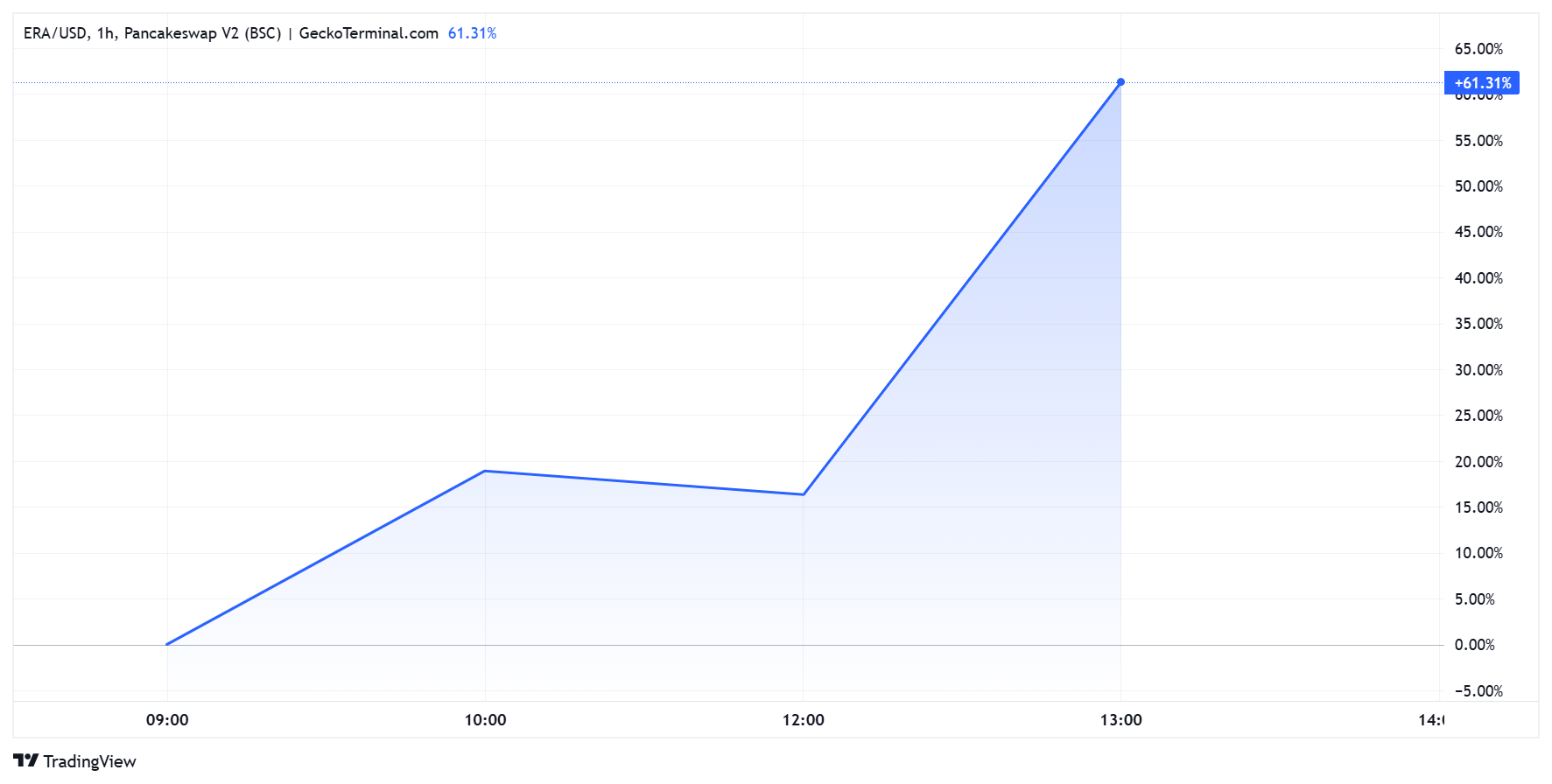 Umiddelbart etter denne noteringskunngjøringen, steg ERA kursen med 60 %. Dette var et forventet utfall, typisk for slike utviklinger for nye tokens på populære børser.