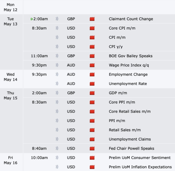 Etter at Kinas KPI-inflasjon kom inn på 0,1 % MoM (måned-over-måned) i april mot mars’ nedgang på 0,4 %, sammen med landets kapitalinnsprøytning, er alle øyne rettet mot USAs KPI denne uken.