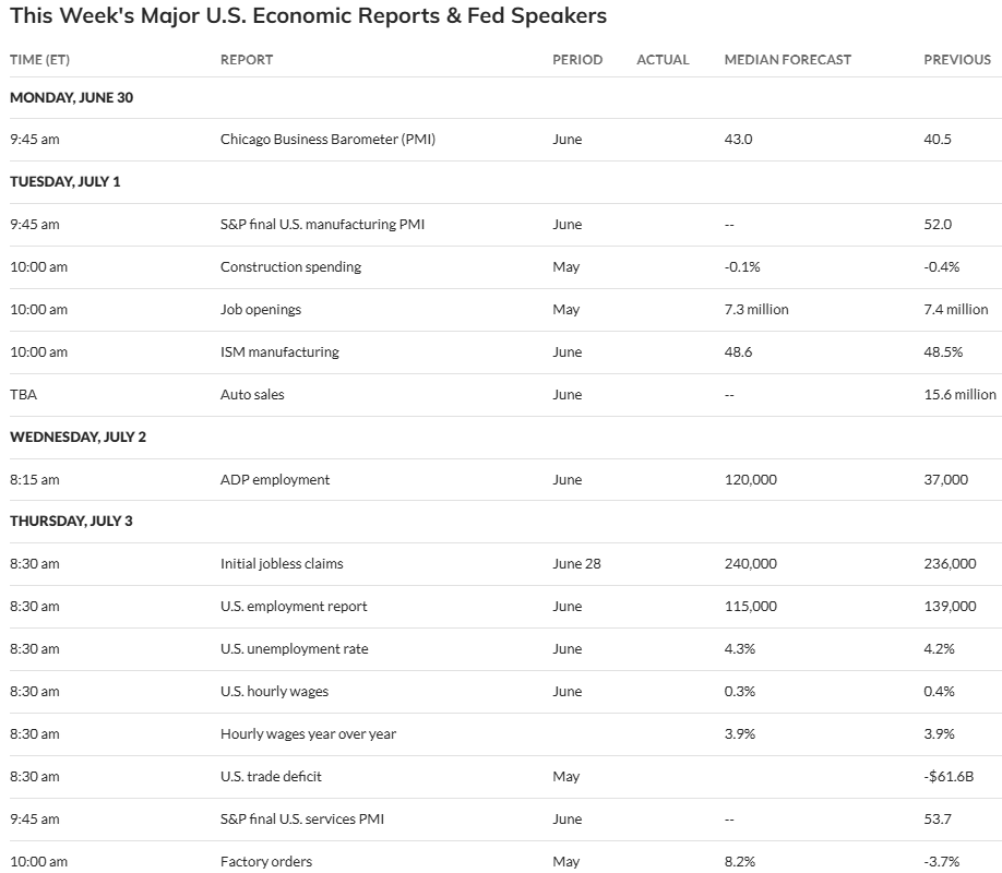 Et annet høydepunkt blant amerikanske økonomiske indikatorer er ADP-rapporten for juni 2025, som kommer onsdag 2. juli. Sysselsettingen i privat sektor økte med 37 000 jobber i mai, det laveste siden mars 2023.