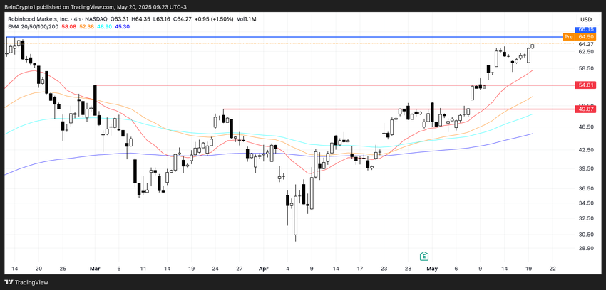 Neste viktige motstand ligger på $ 66,15; et klart brudd over det kan presse HOOD inn i ukjent territorium, og overgå $ 70-merket for første gang og etablere nye all-time highs.
