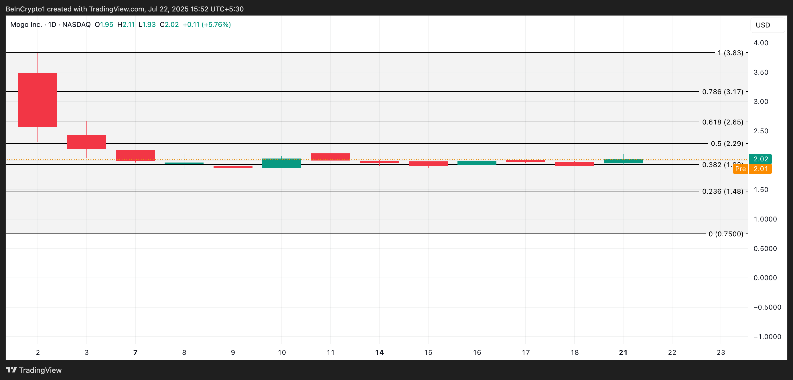 Den positive investorstemningen rundt avtalen ser ut til å ha økt MOGO’s verdi, ettersom den handles til $ 2,01 i pre-marked aktivitet i morges. Hvis bullish momentum vedvarer når markedet åpner, kan aksjen stige mot $ 2,29.