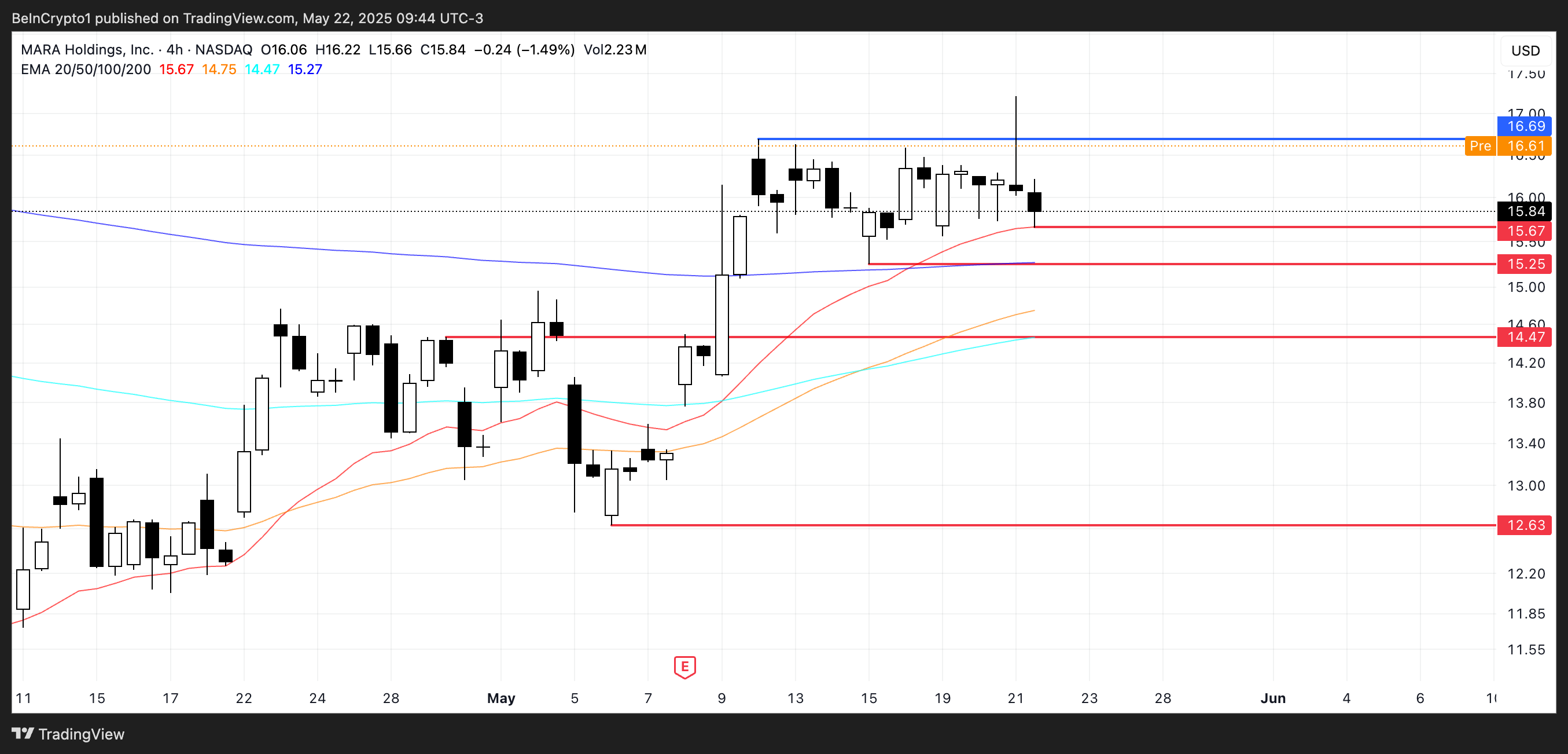 Hvis trenden svekkes, kan MARA teste støtte på $ 15,67, $ 15,25 eller $ 14,47; et fornyet oppbrudd kan presse det mot motstand på $ 16,69 og potensielt over $ 17.