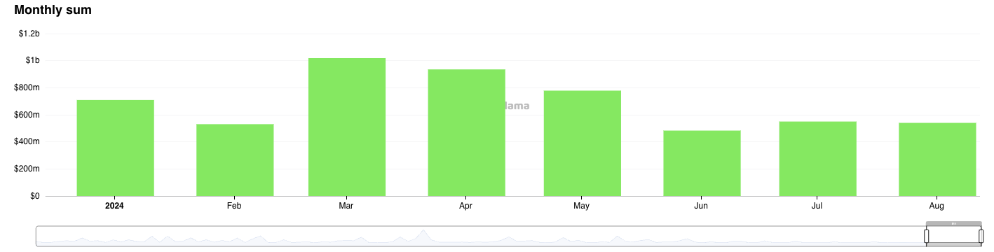Ifølge DefiLlama har kryptofirmaer samlet inn over $ 5,5 milliarder i finansiering i år, med $ 540 millioner sikret i august alene. Imidlertid er augustfinansieringene rundt 50 % ned fra toppen i mars.