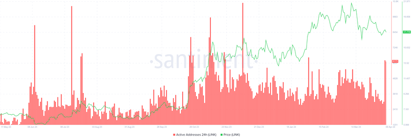 LINK-innehaverne har vist en plutselig økning i interessen for eiendelen, noe som fremgår av den økte deltakelsen i hele nettverket. Aktive adresser skjøt opp med nesten 104% på den daglige tidsrammen og nådde en to måneders høyde.