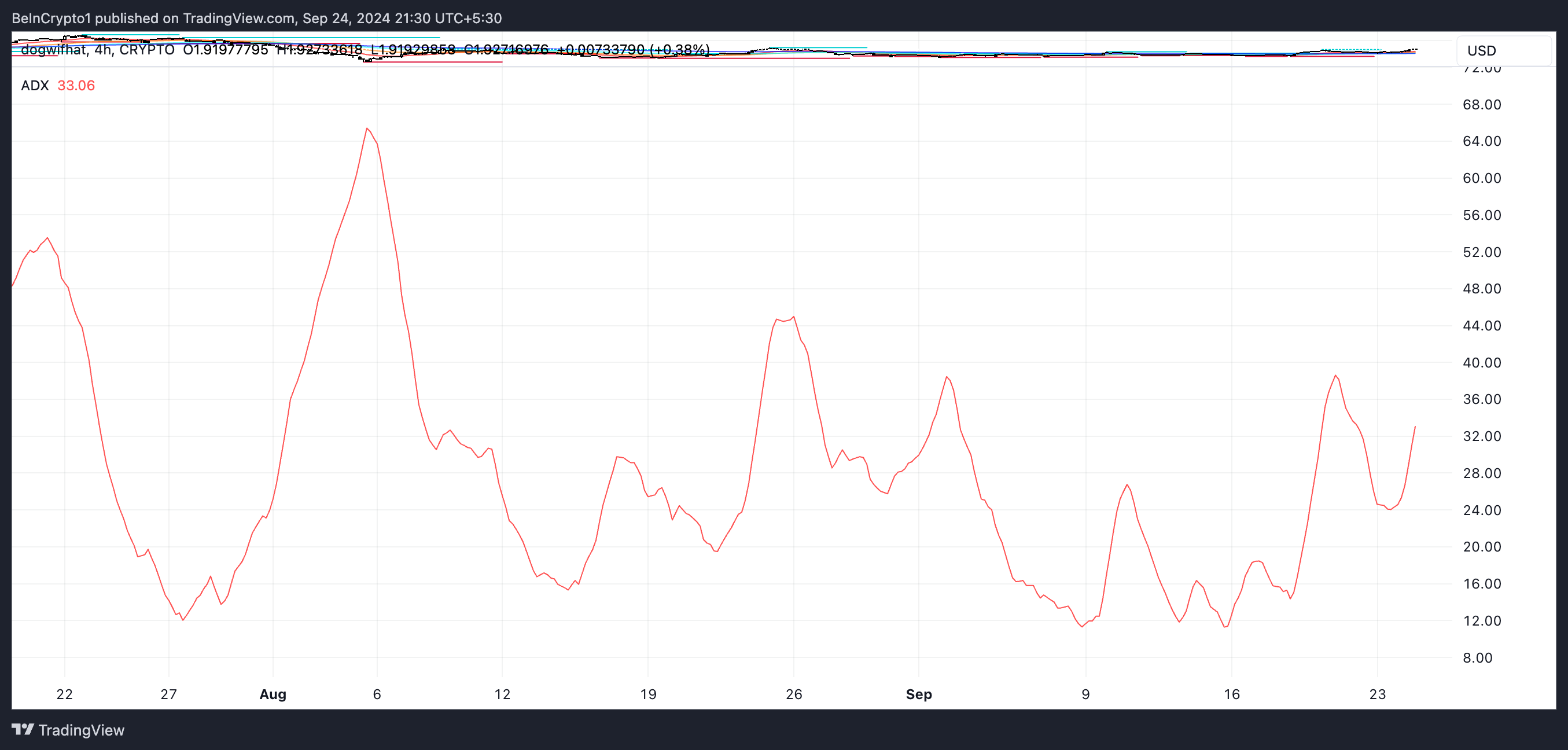 WIF ADX indikerer et sterkt oppadgående momentum