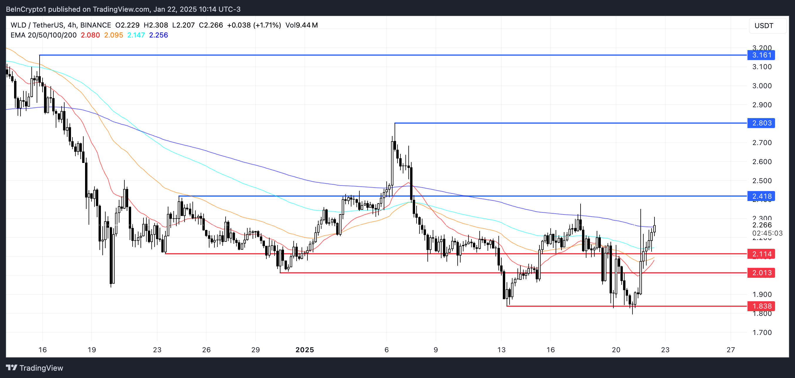 Denne fornyede interessen har presset WLD nærmere et potensielt golden cross på sine EMA-linjer, et bullish signal som kan drive prisen til å teste motstand på $ 2,41. Hvis dette nivået brytes, kan WLD sikte mot $ 2,83. Med fortsatt hype rundt AI-relaterte coins, kan det til og med teste $ 3,16, og overstige $ 3 for første gang siden desember 2024.