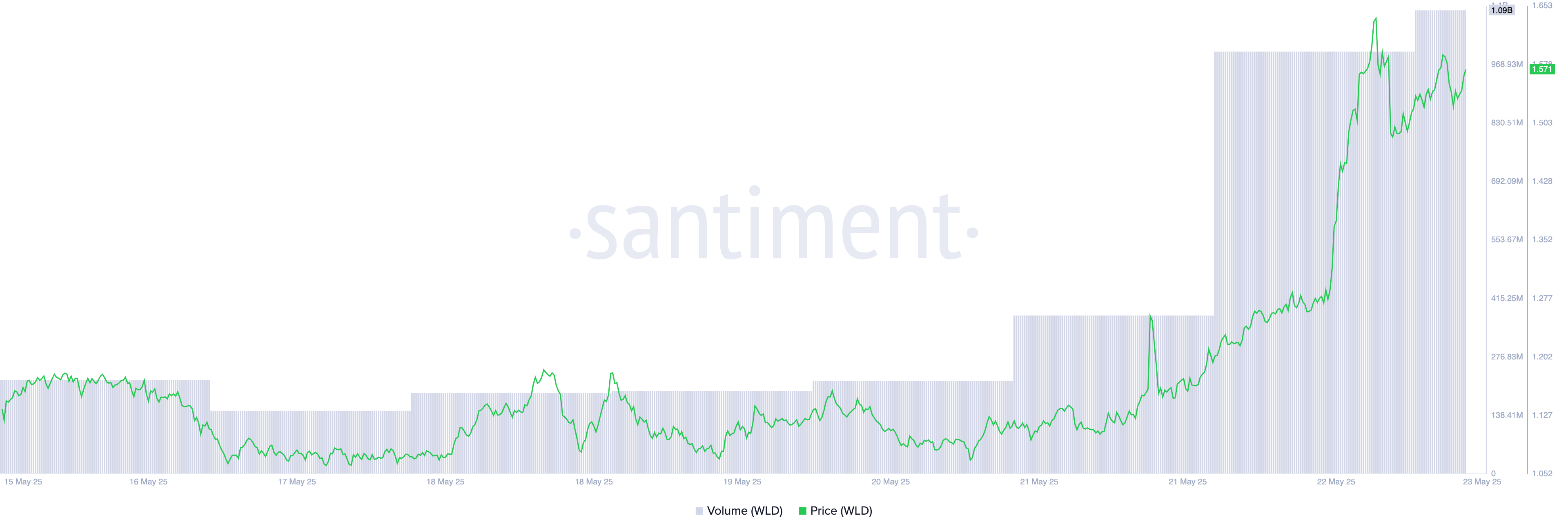 Videre fortsetter WLDs daglige handelsvolum å skyte i været, noe som indikerer at prisøkningen støttes av faktisk tokenetterspørsel og ikke av spekulativ handelsaktivitet. I skrivende stund er altcoinens handelsvolum opp 159 %, og overstiger $ 1 milliard.