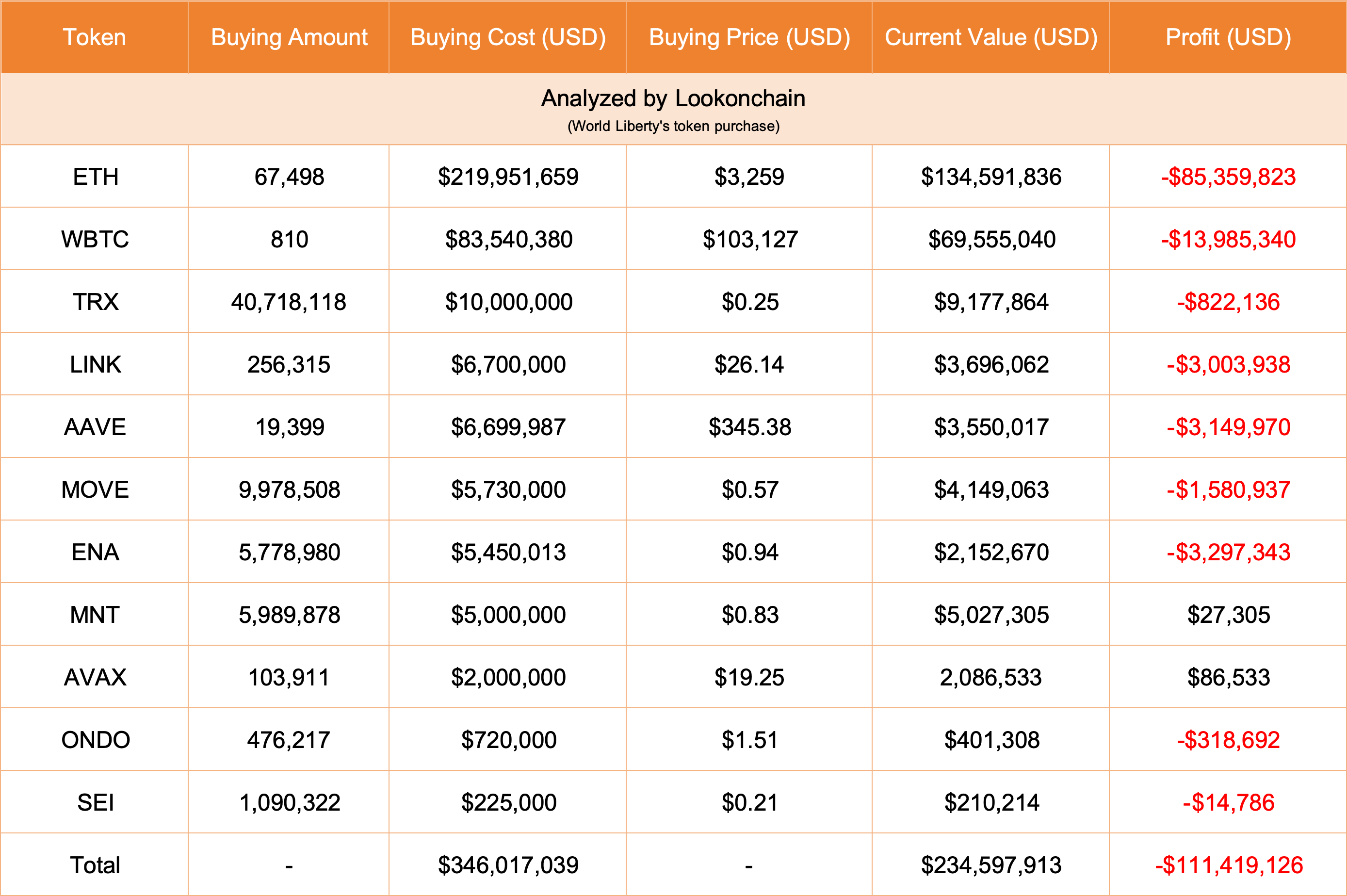 Likevel er porteføljens nåværende verdi bare $ 234,6 millioner til dagens markedspriser. Som et resultat står WLFI overfor et tap på $ 111,4 millioner.