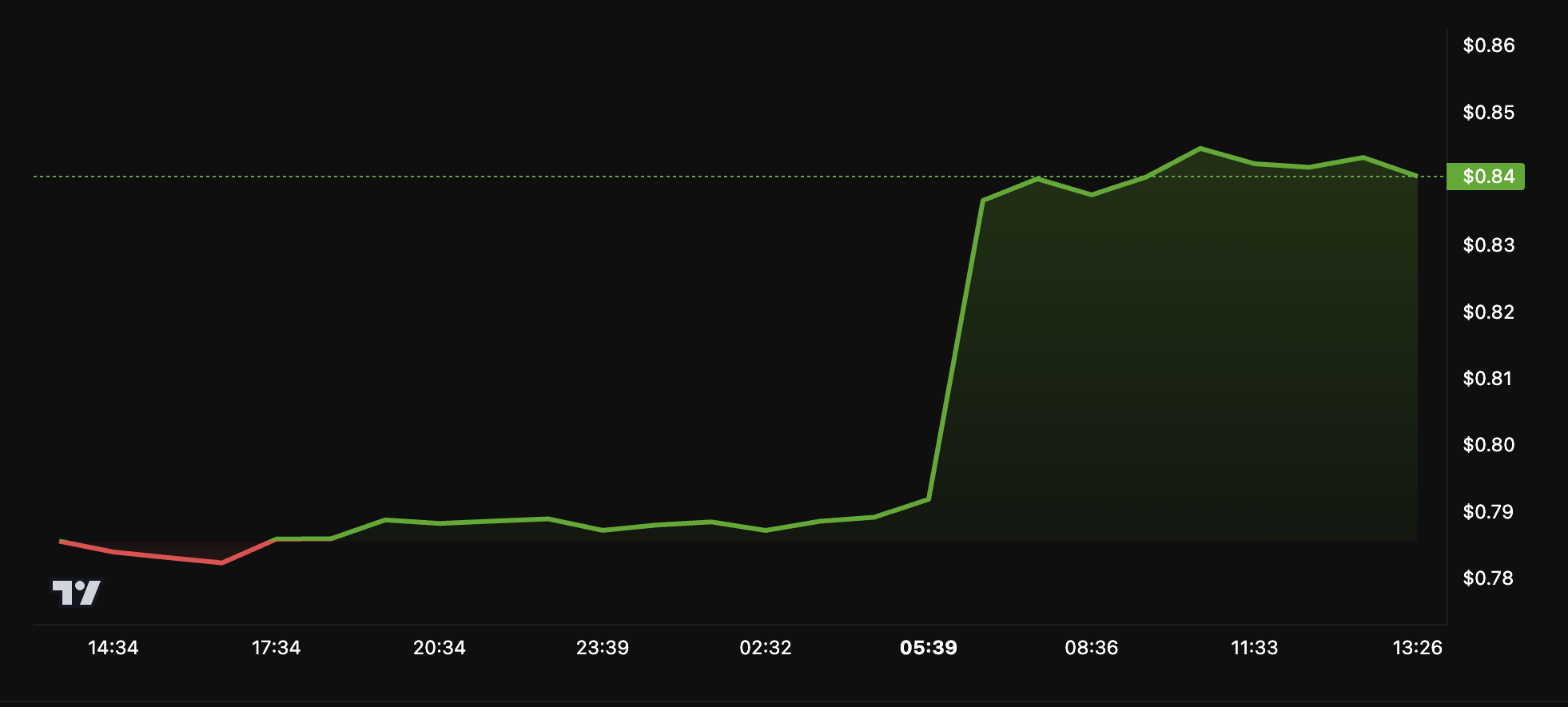 Etter kunngjøringen så altcoinen en beskjeden prisøkning. I følge BeInCrypto-data steg verdien med 7,3 % de siste 24 timene. I skrivende stund ble MNT handlet til $ 0,84. Tokenets handelsvolum økte også med 72,7 %, noe som fremhever en merkbar økning i markedsaktivitet og investorinteresse.