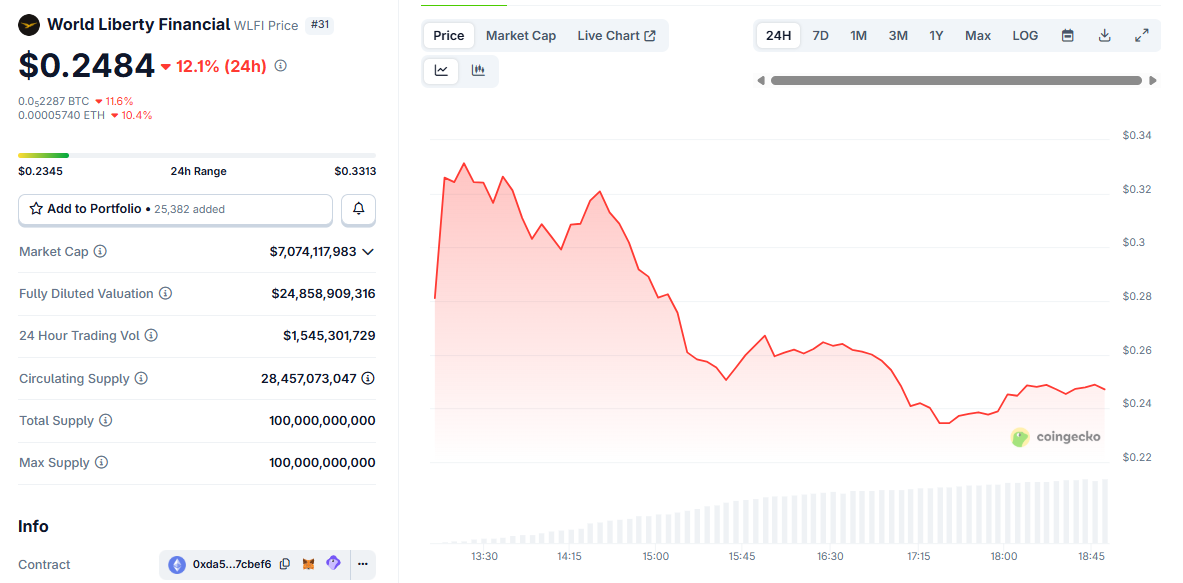 WLFI ble lansert på Binance og flere andre børser, med en startpris nær $ 0,33 før den falt til omtrent $ 0,24 tidlig på kvelden. Det kraftige fallet kom da forhåndssalgsdeltakere begynte å selge tokens på børsene.
