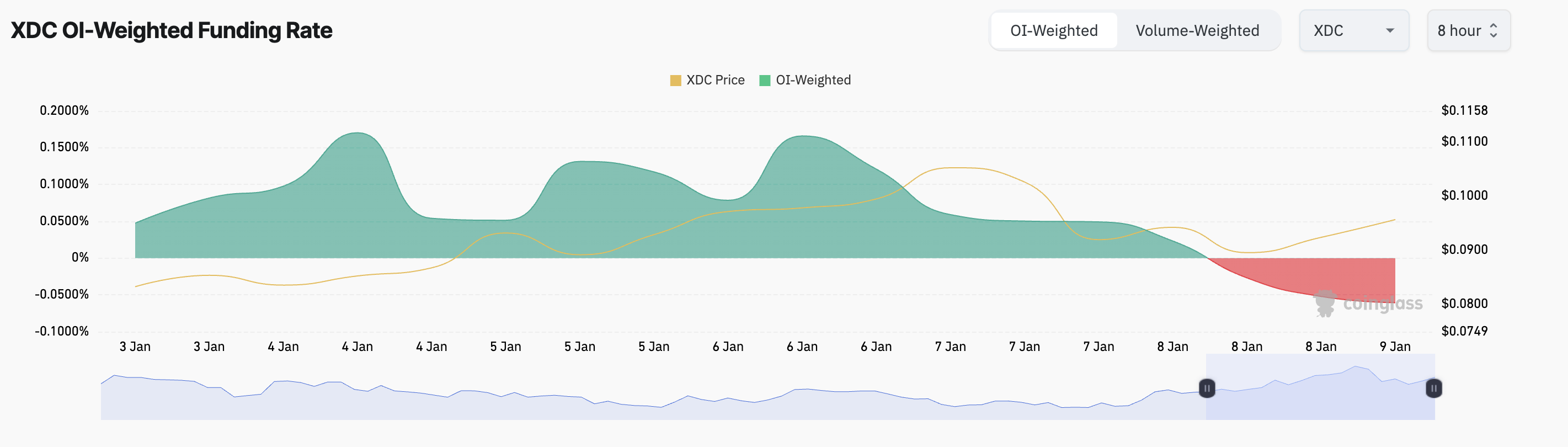 Imidlertid utfordrer mange XDC futures tradere opptrenden, noe som fremgår av tokenets negative funding rate. For øyeblikket på -0,06, reflekterer dette en sterk etterspørsel etter short-posisjoner.